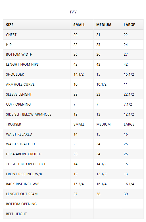 Size charts available in images/ swipe / scroll to the last image to view the size chart.