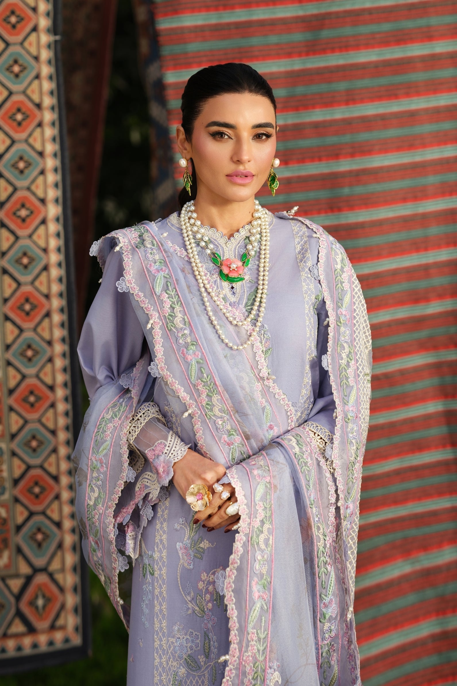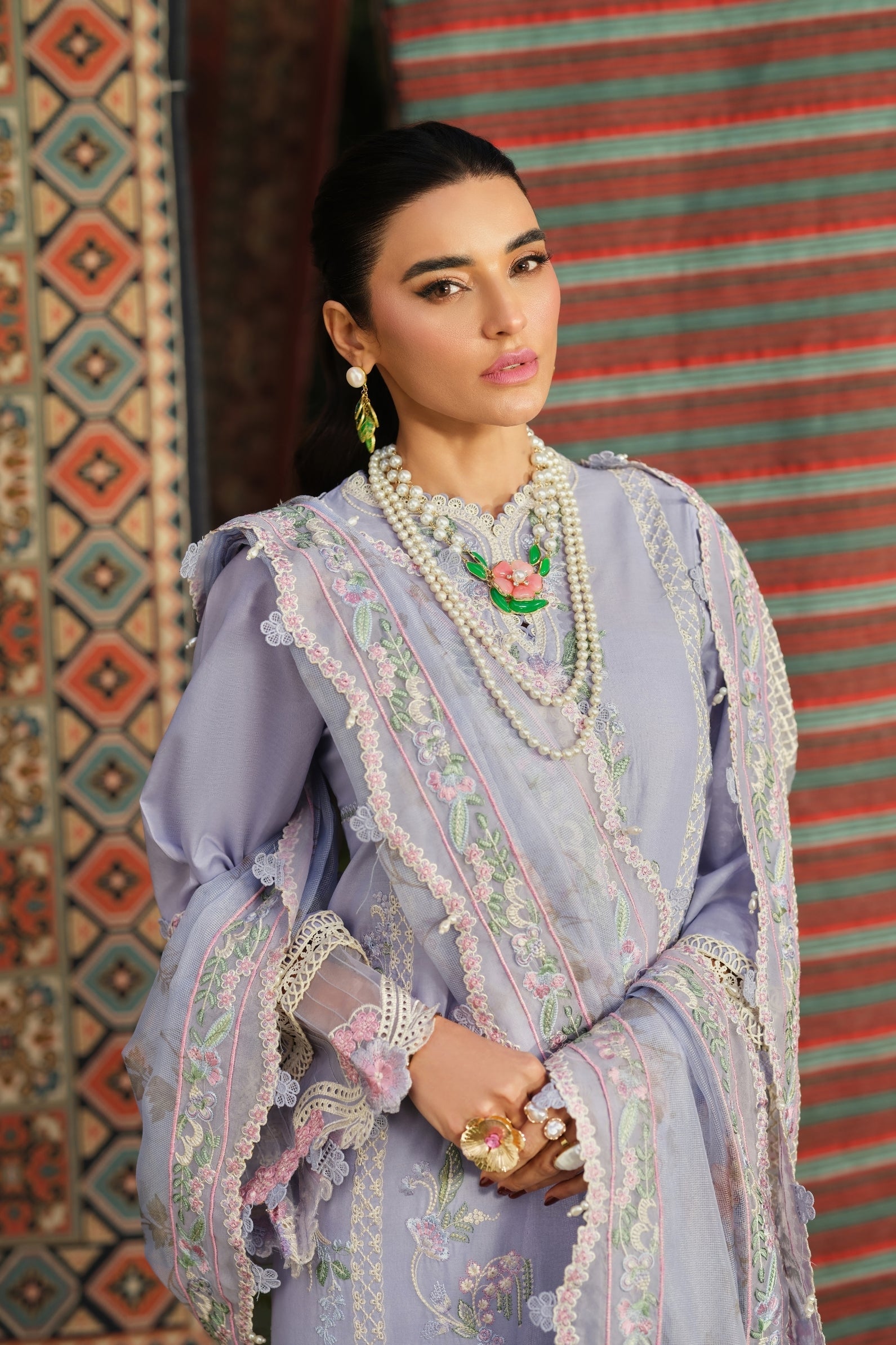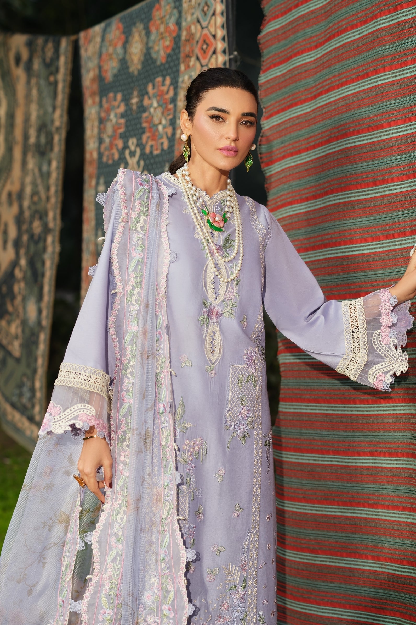 - Embroidered left right panel for lawn fabric