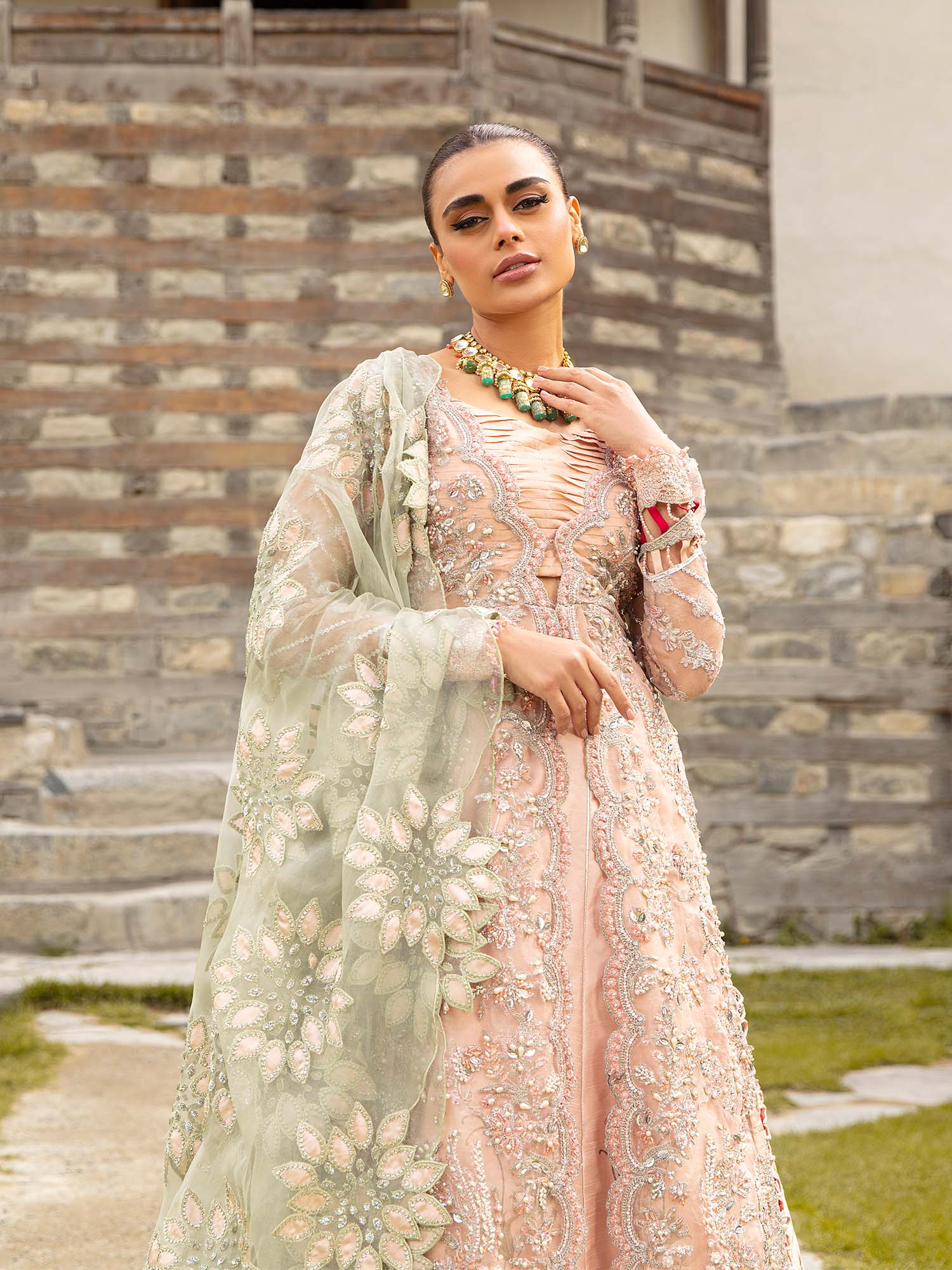 • Sequin embroided and hamd embellished front left / right pannels on orgamza