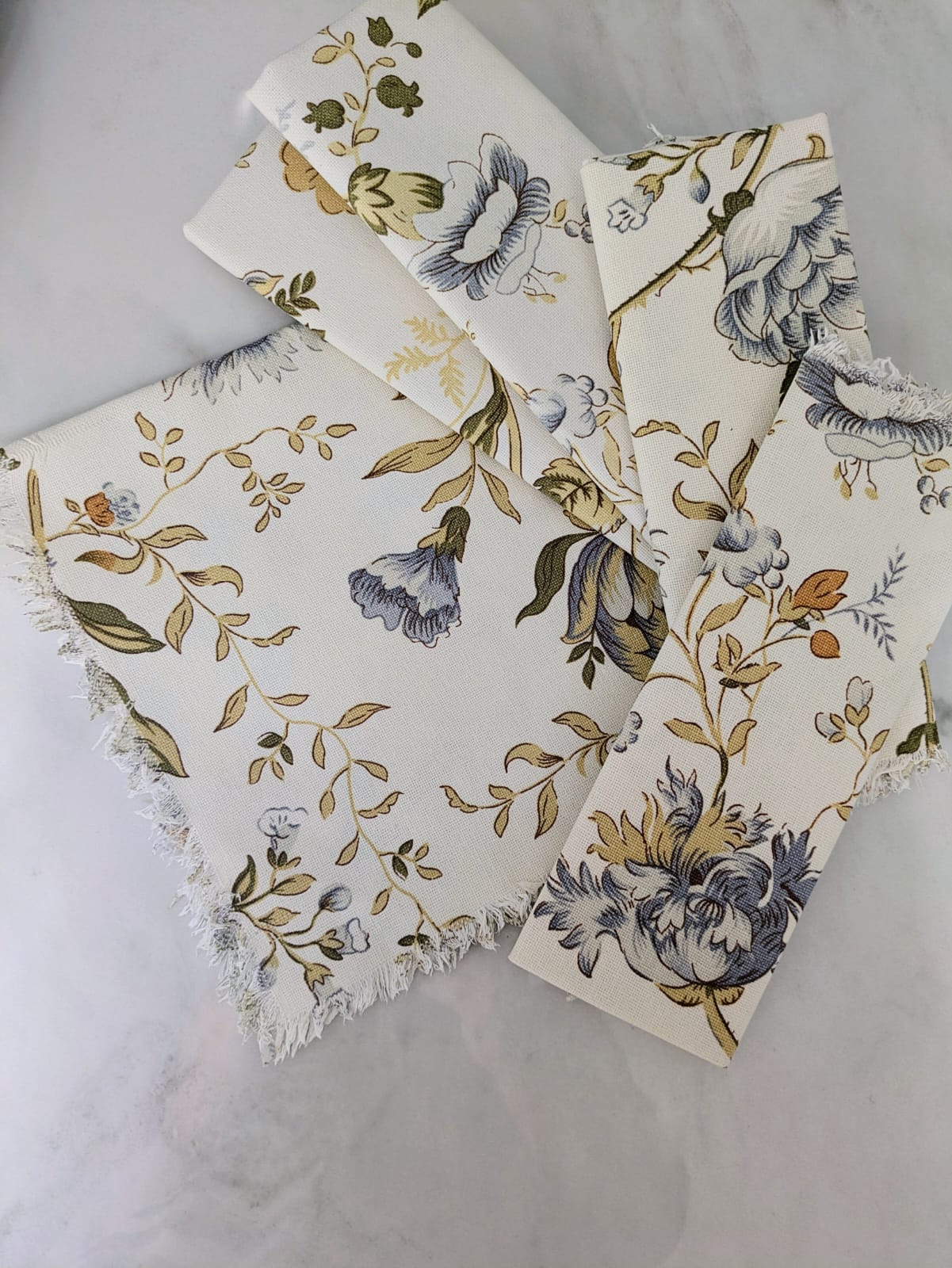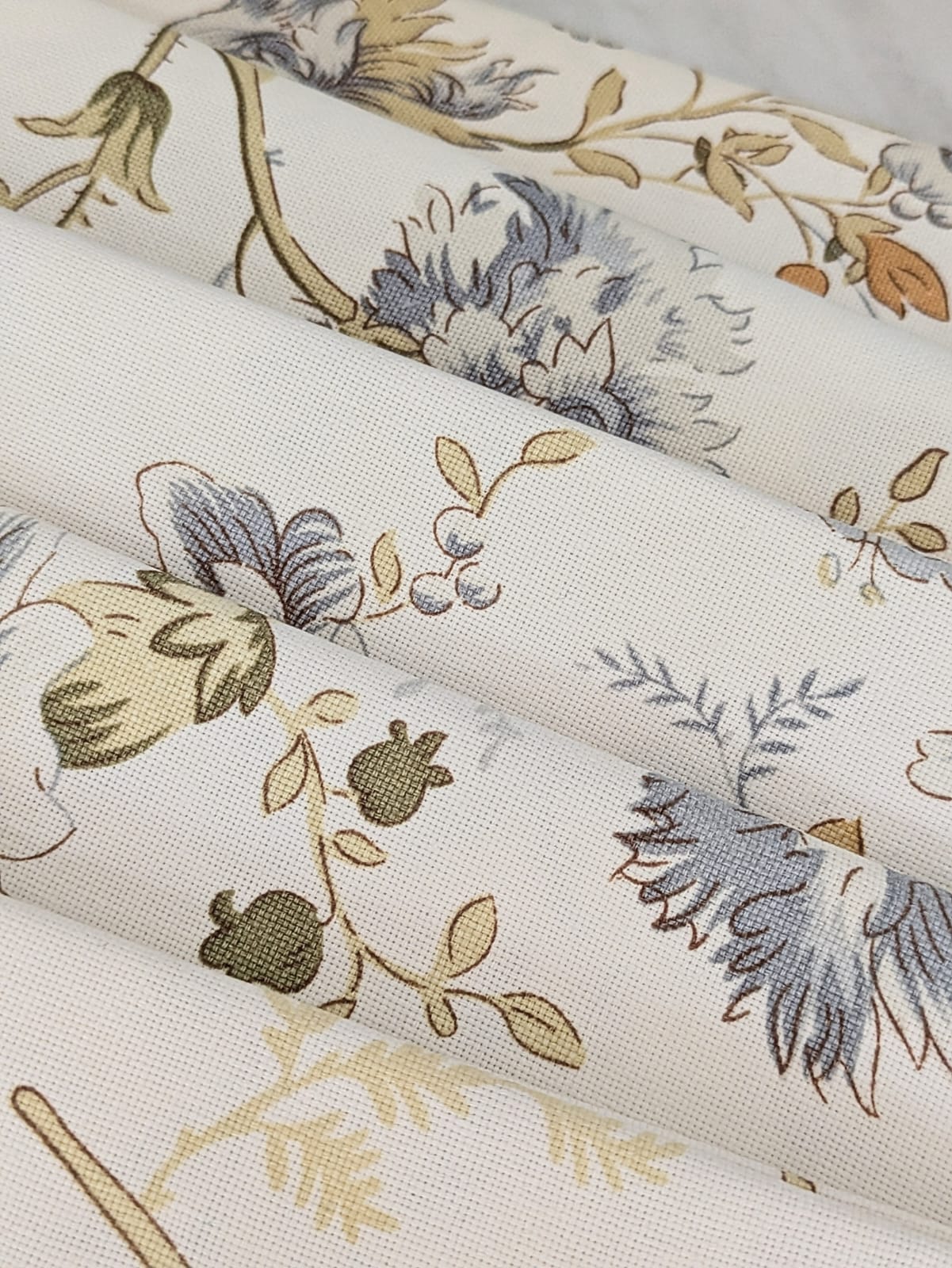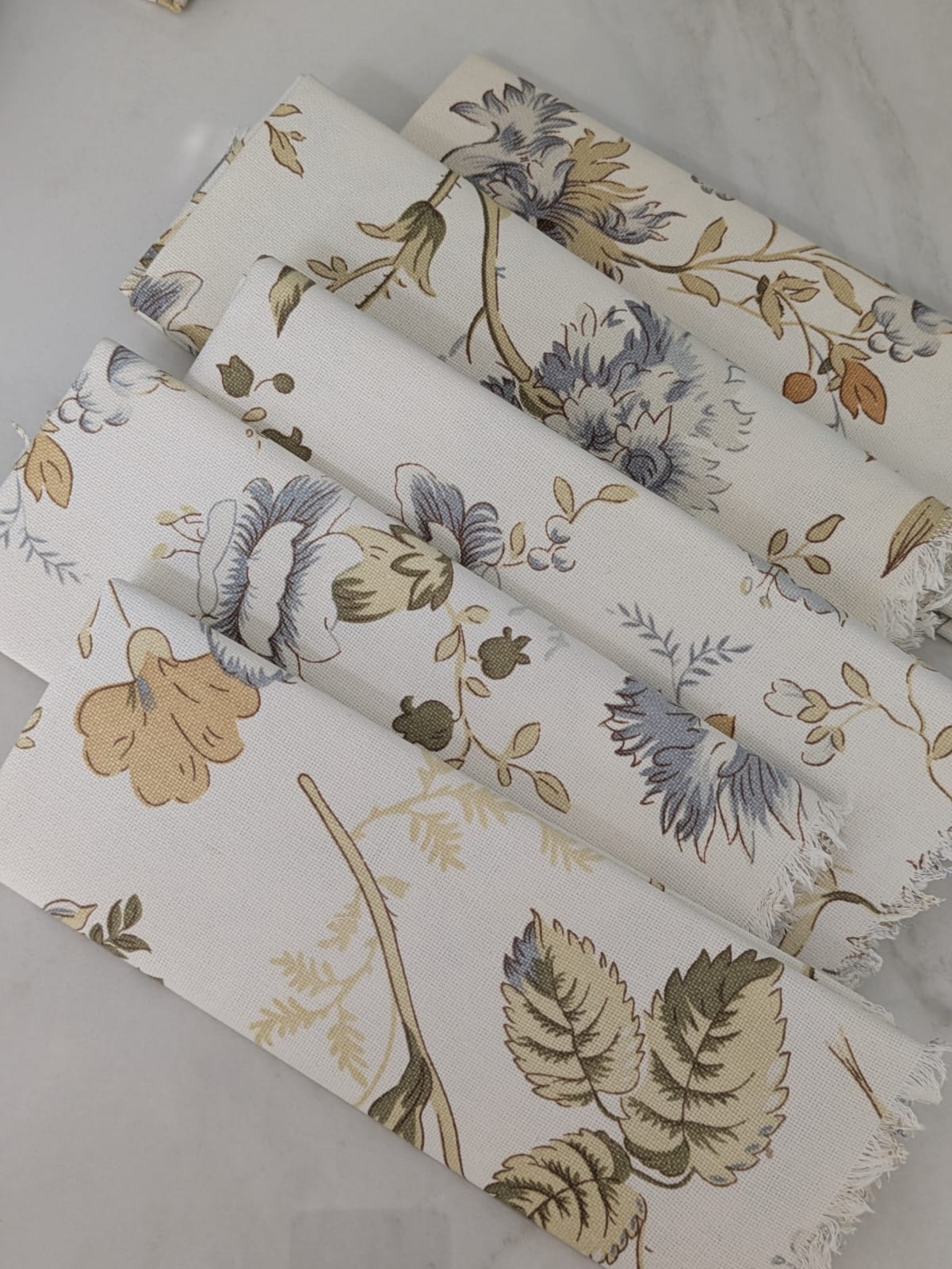 Dinner napkins designed for the fall season. Featuring a soft beige base paired with earthy tones and a soothing shade of blue. The elegant design brings warmth to your table, while the carefully chosen fabric offers a luxurious texture and lasting comfort.