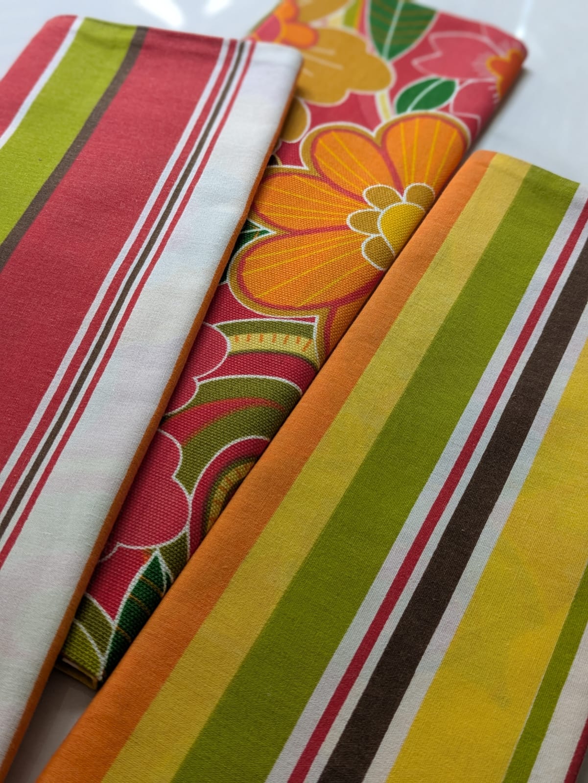 Reversible bright and vibrant placemats. One side features playful stripes that flow from thin to broad strokes, while the other blooms with a lively floral design. A perfect way to create an inviting and cheerful tablescape that instantly lights up your space.