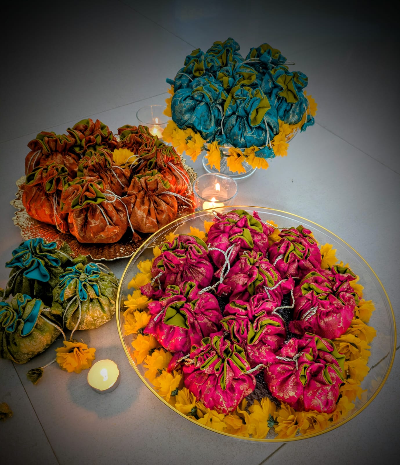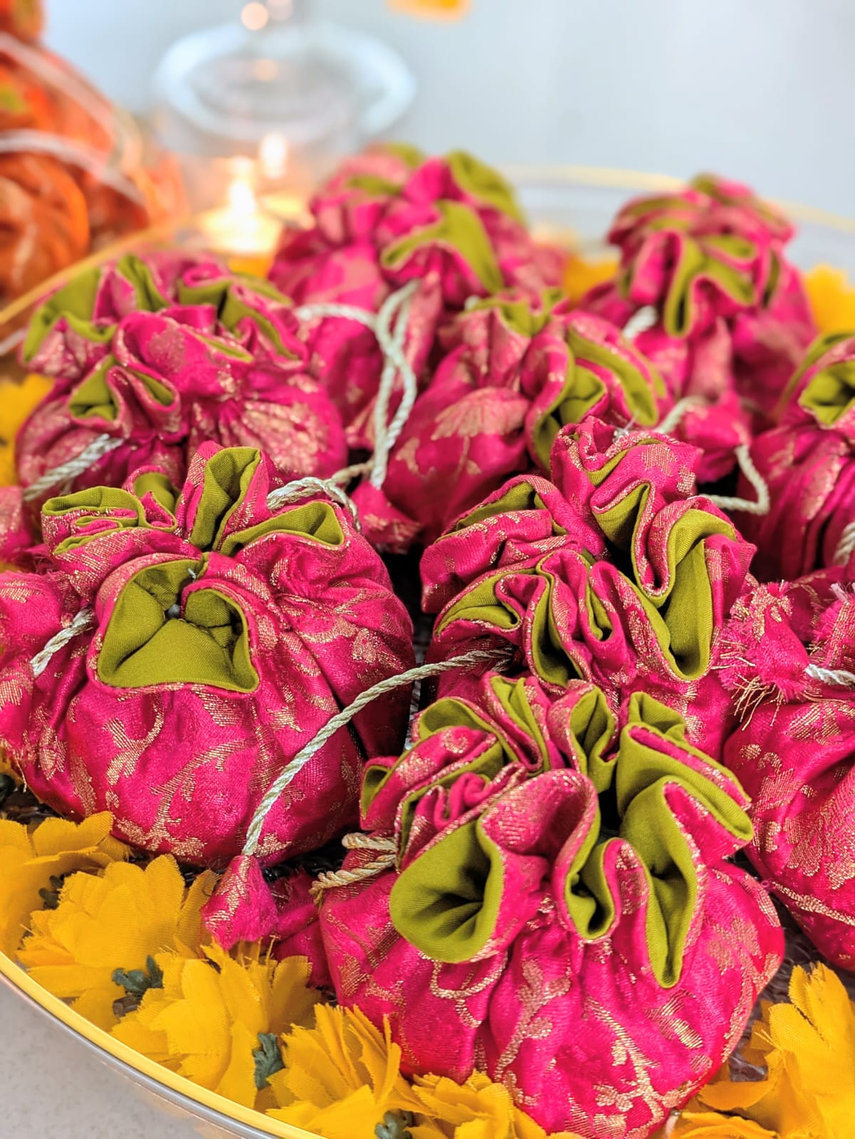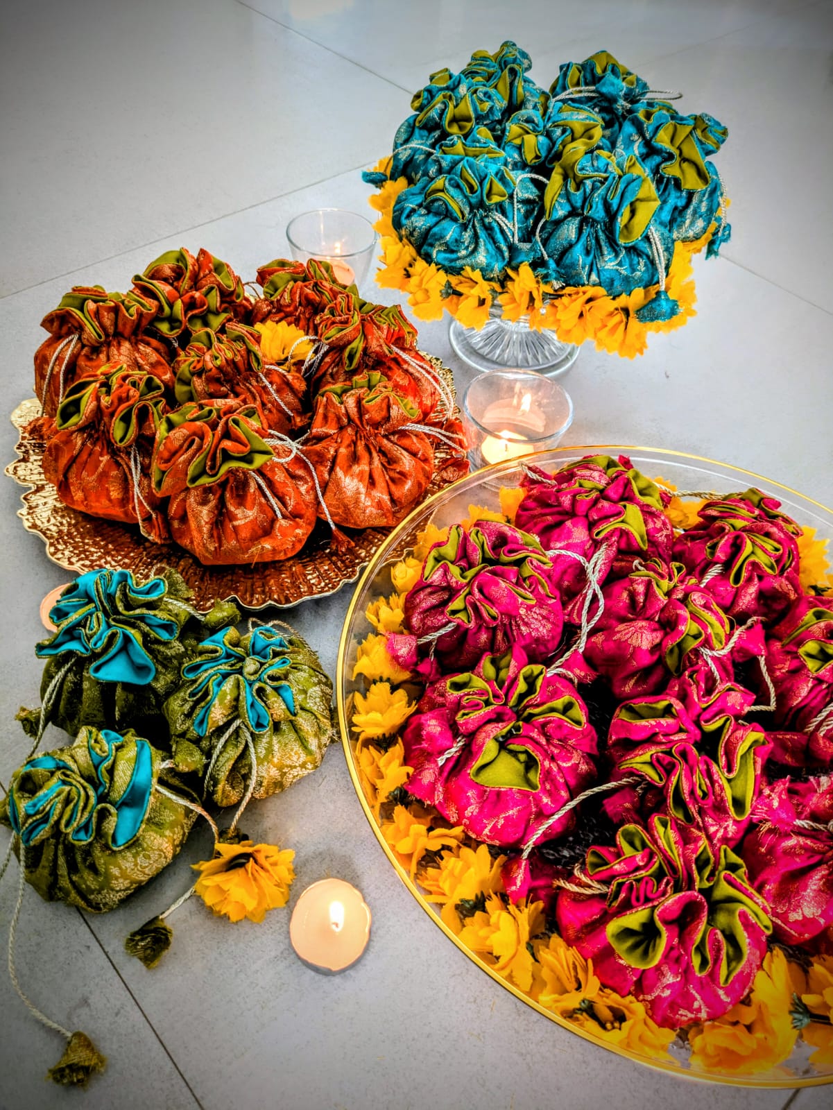 Jamawar pouches embody tradition and our rich cultural heritage. Their vibrant colors add life to every occasion, making them perfect for Nikkah announcements and memorable giveaways. Let these bright hues bring joy and elegance to your special event.