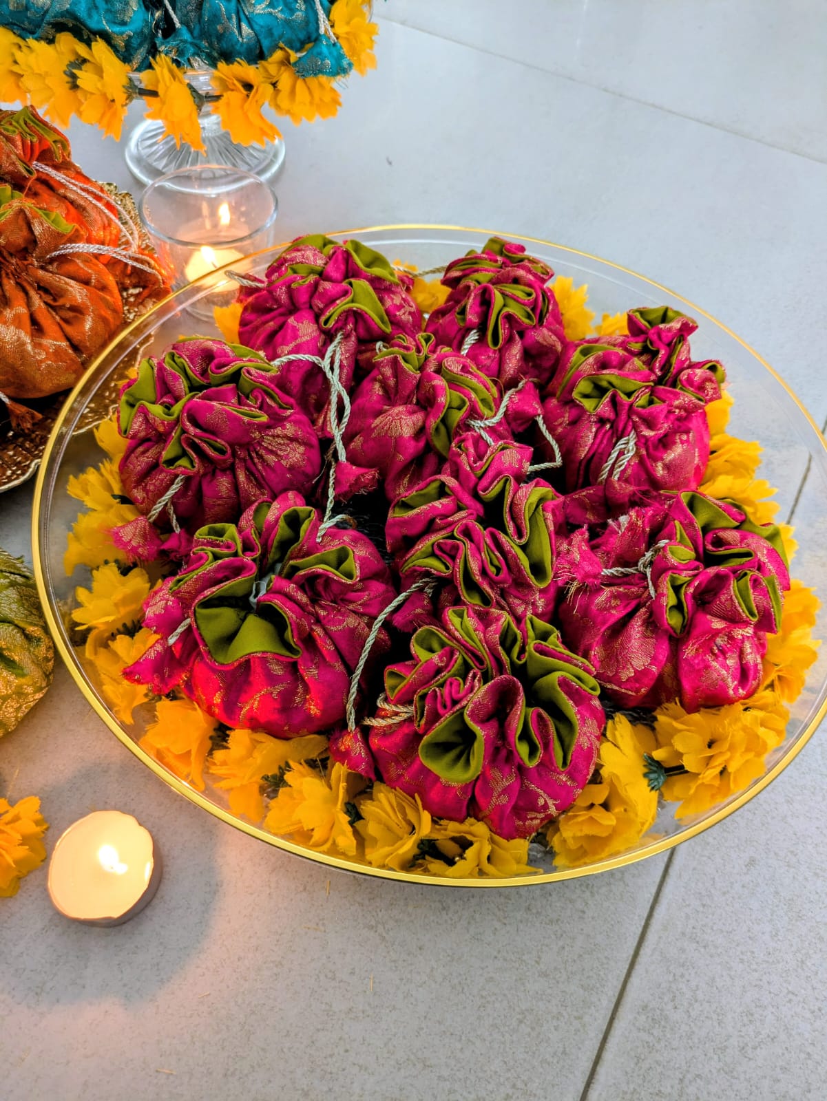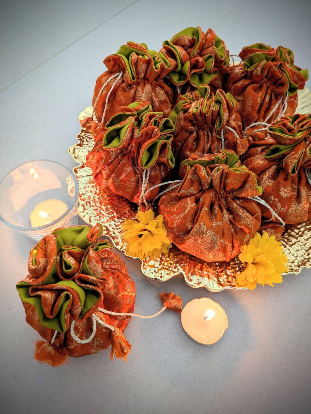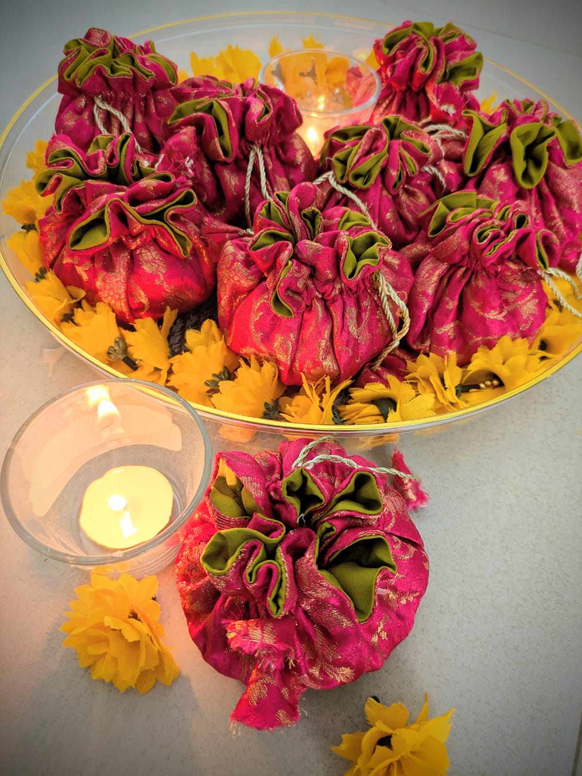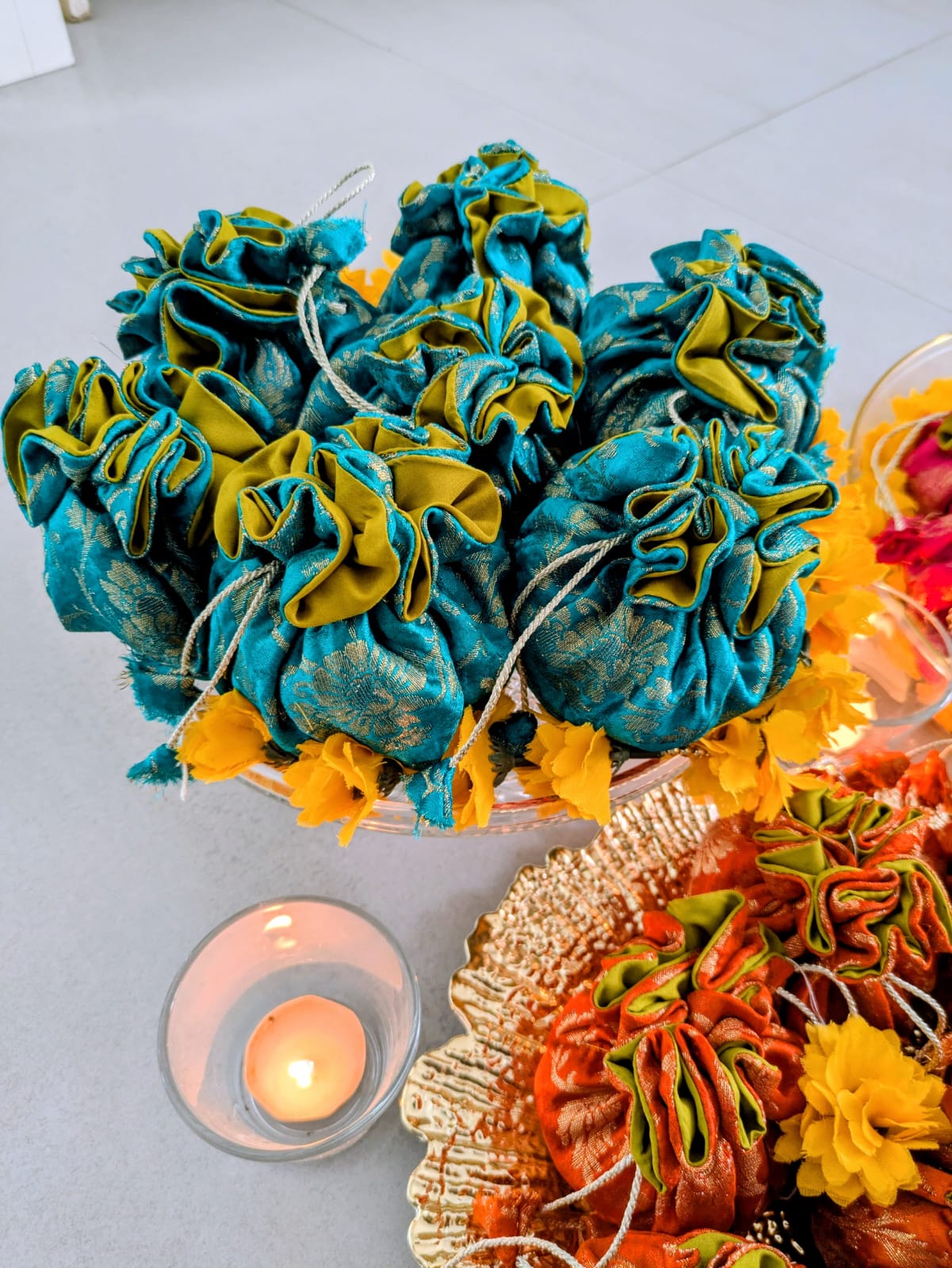 Jamawar pouches embody tradition and our rich cultural heritage. Their vibrant colors add life to every occasion, making them perfect for Nikkah announcements and memorable giveaways. Let these bright hues bring joy and elegance to your special event.