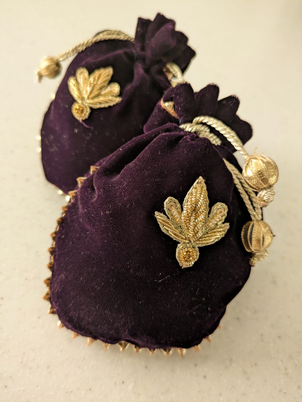 Velvet pouches are a perfect fit for our traditional weddings. Rich in texture and adorned with gold motifs, they look even more stunning. We aim to make your wedding truly memorable because it’s your special day, and every little detail deserves to feel extraordinary.