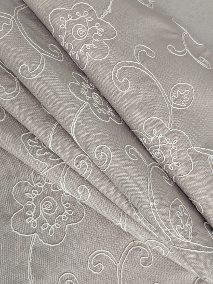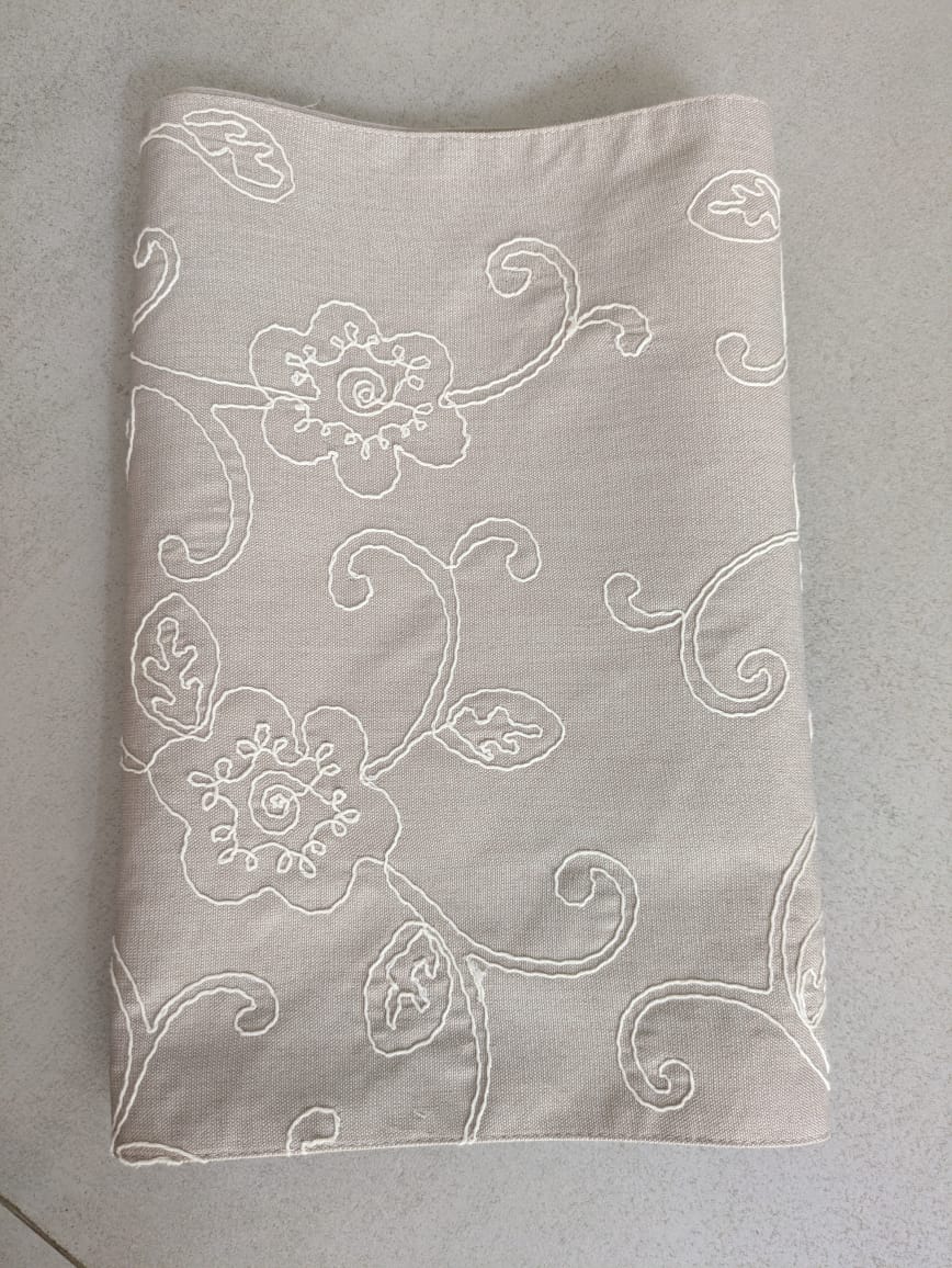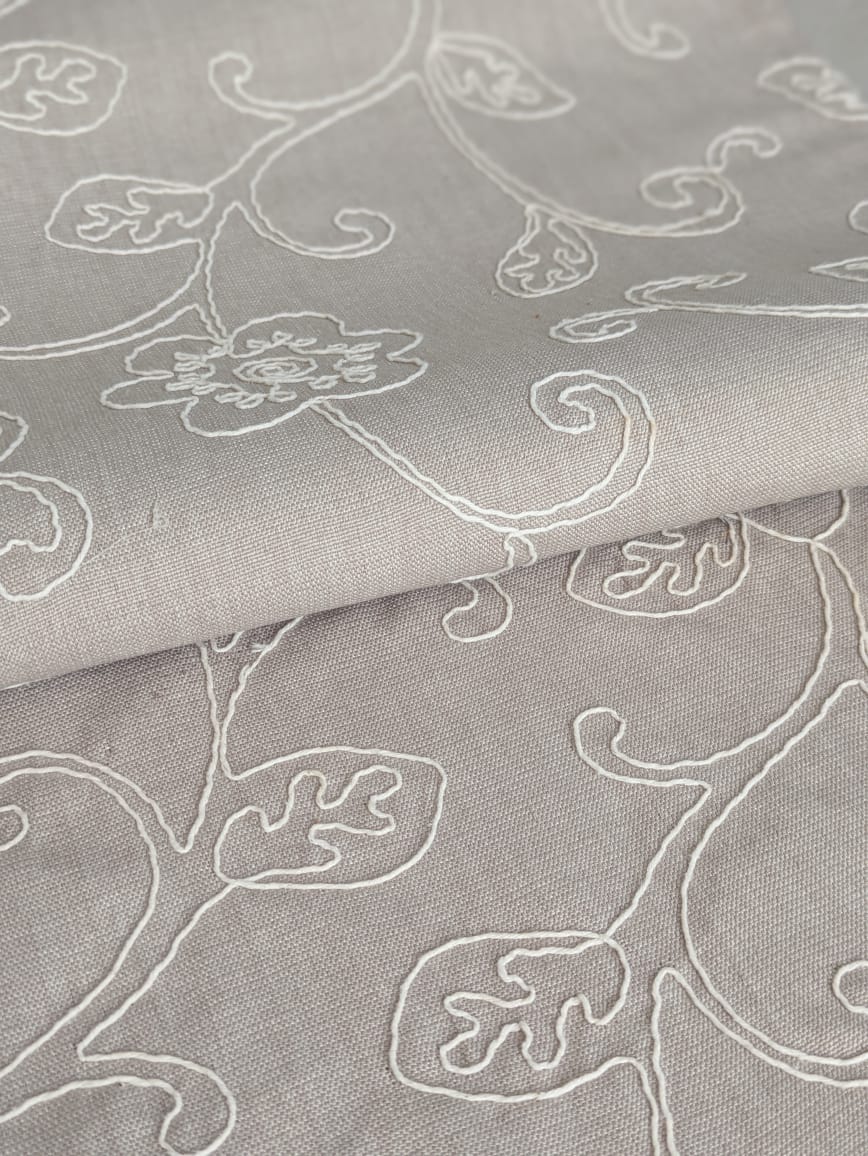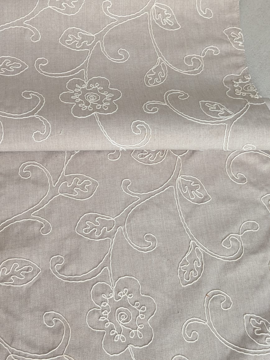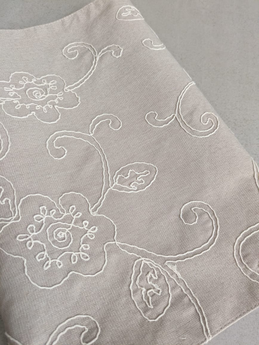 Set against a soft beige background, this fully embroidered floral design exudes understated elegance. Its delicate detailing creates a calming charm, perfect for elevating any tablescape.