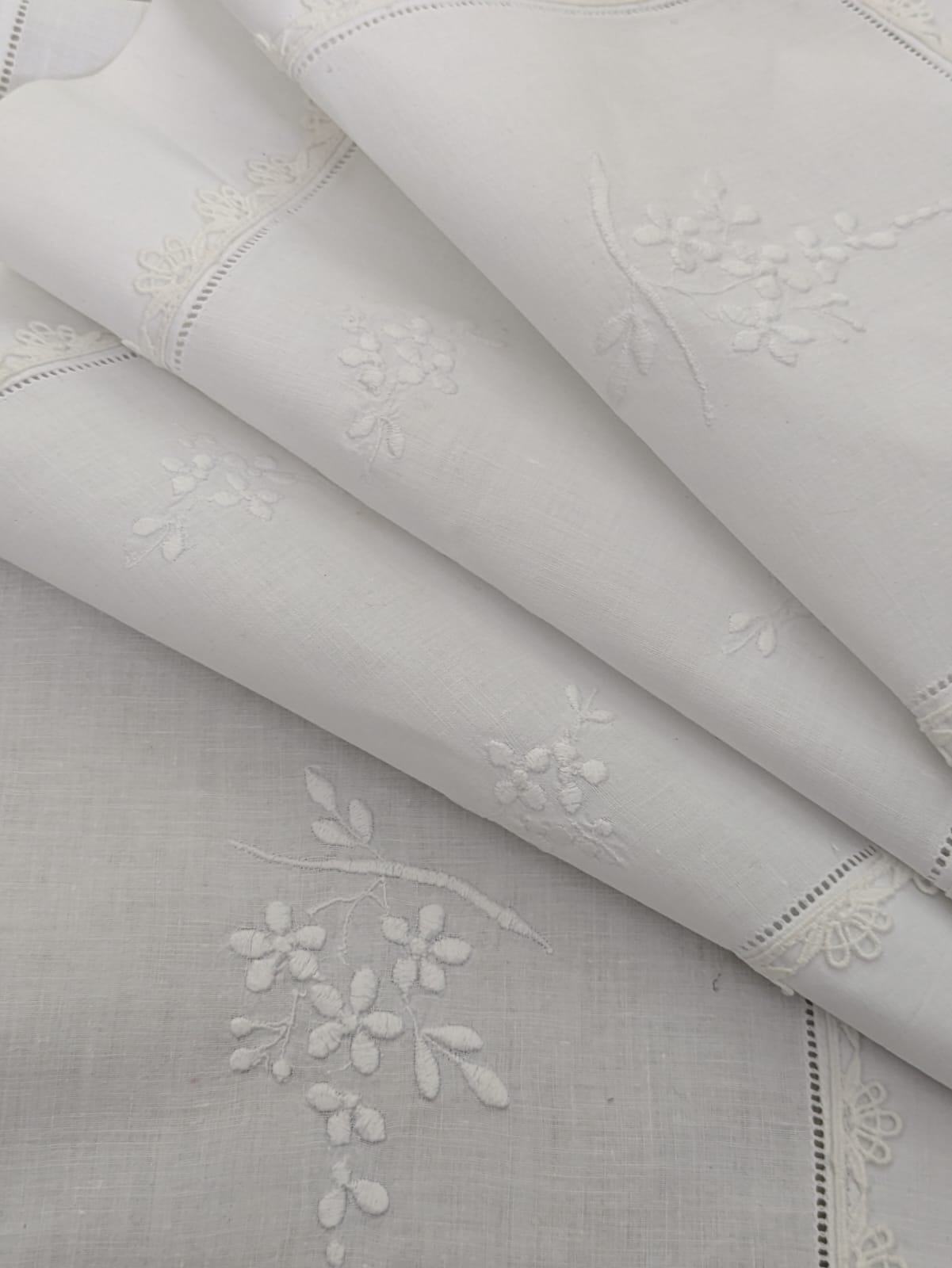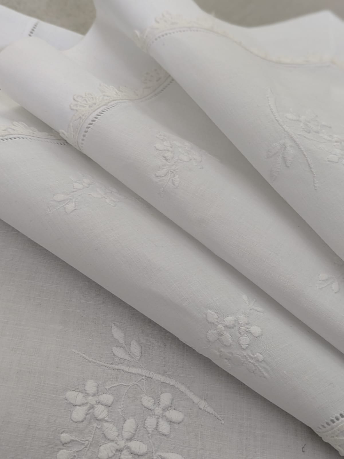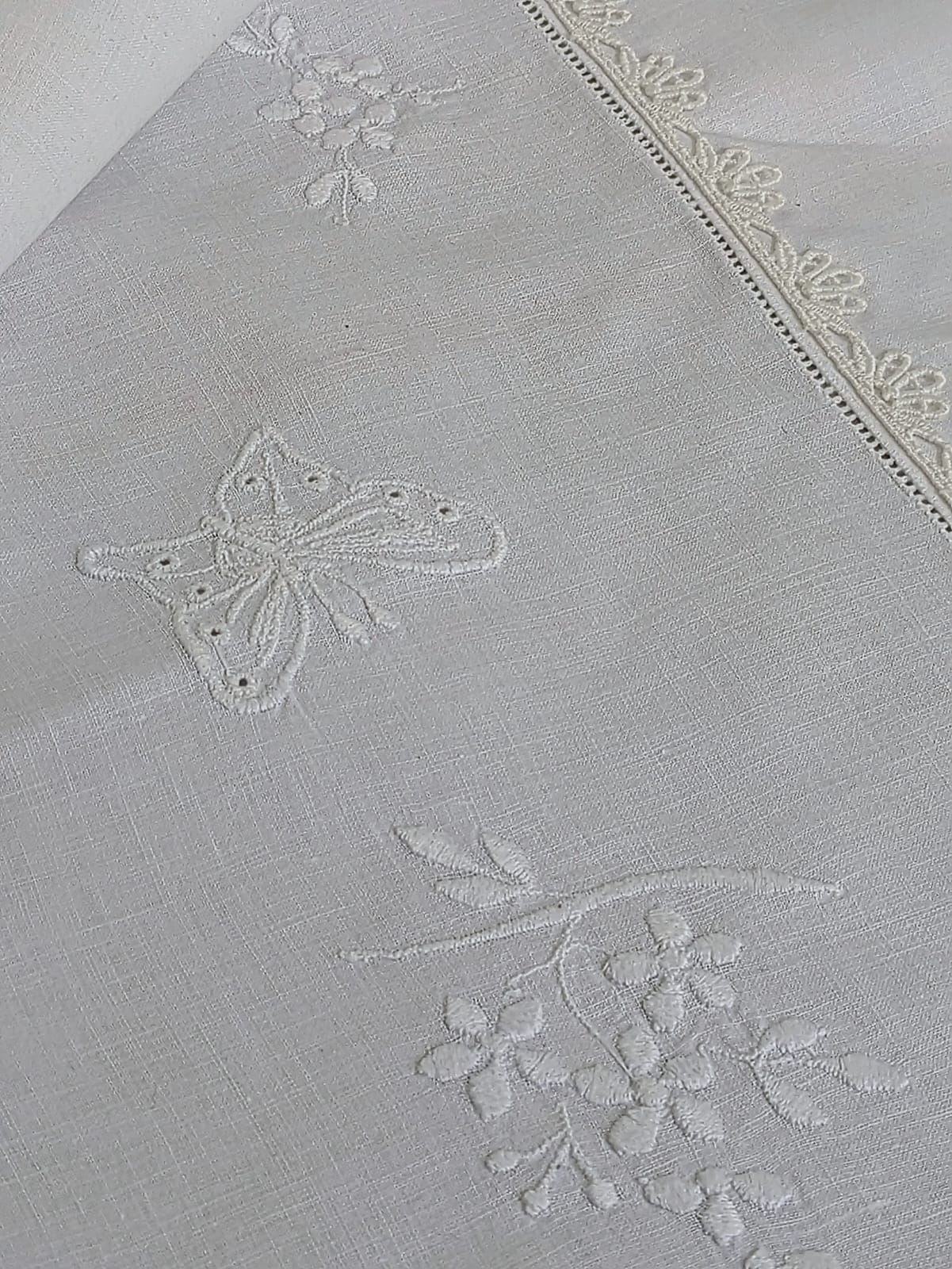 White on white elegance — delicate embroidered bunches paired with a tarkashi edging and a hint of lace create a refined, timeless look. It’s an understated touch of class all on its own.