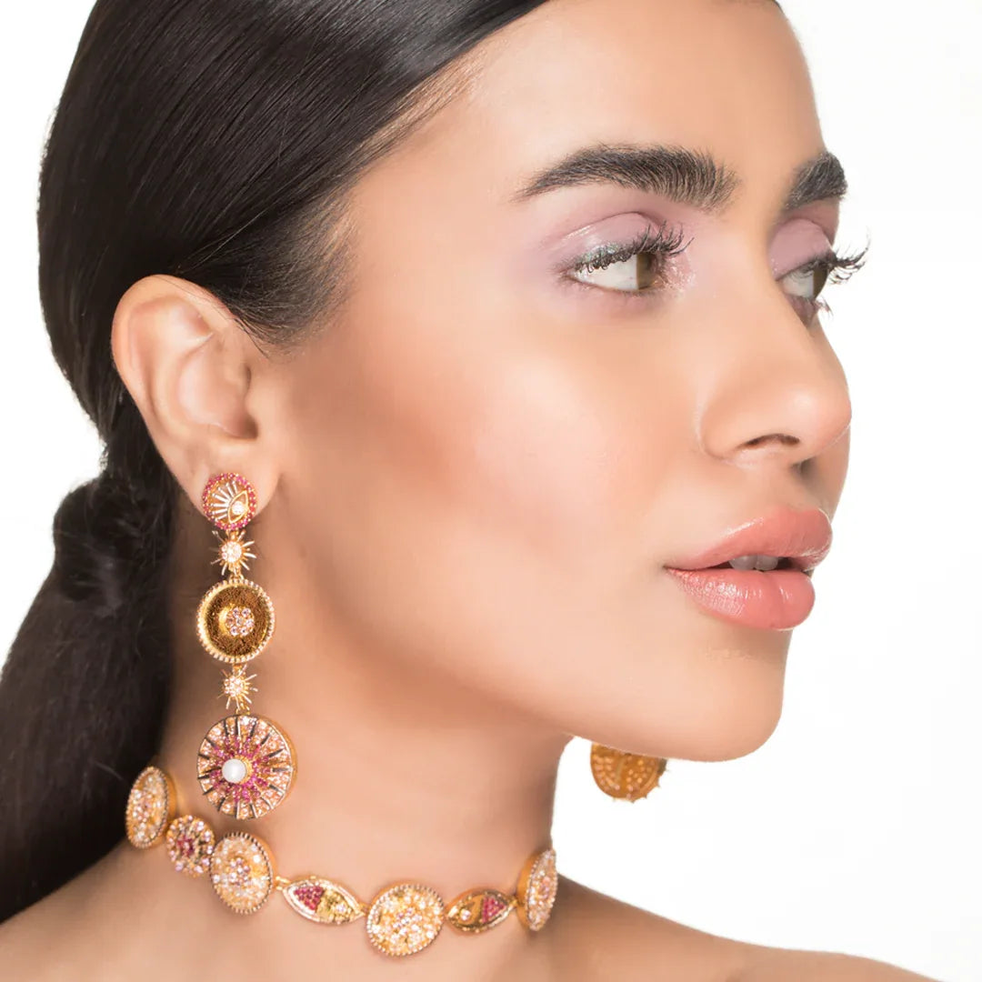 Gold-plated necklace with touches of rhodium, accentuated by the brilliance of chatham and zircons.