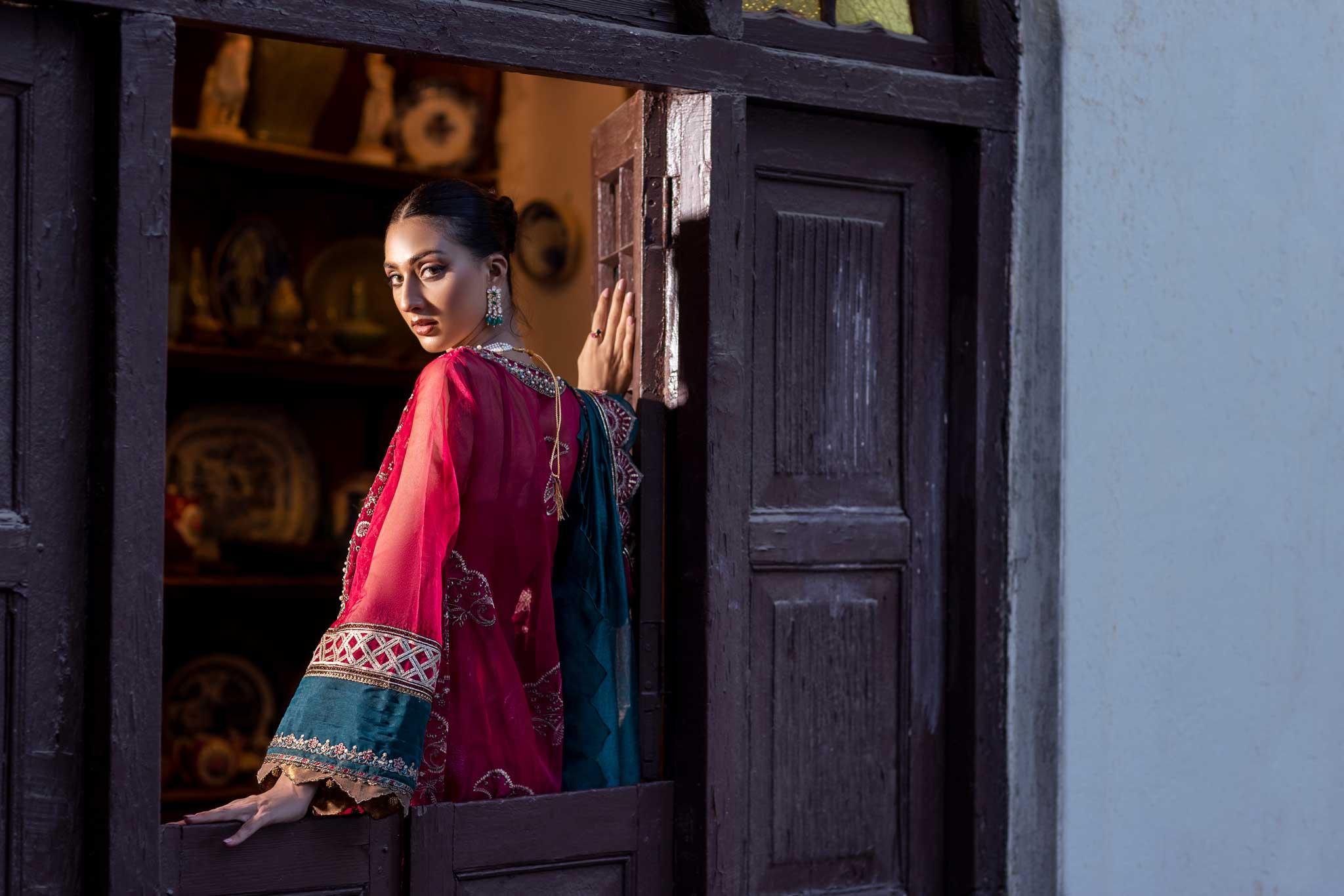 - Embroidered Sleeve Patti 2 Organza (Green)