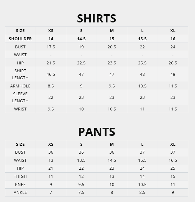 Size charts available in images/ swipe / scroll to the last image to view the size chart.