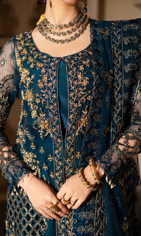 Front Panels: Embroidered on net with hand embellishment & cutwork